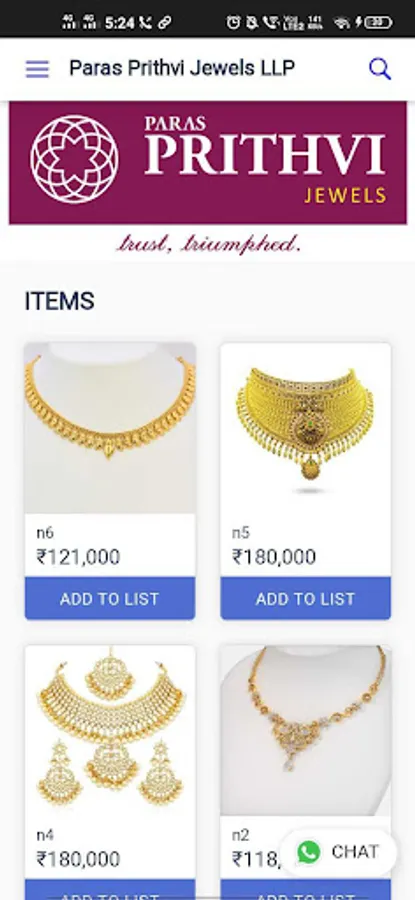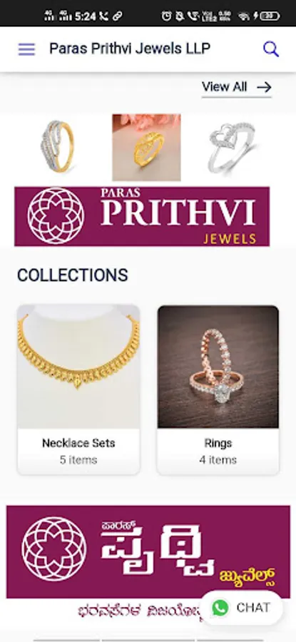 Shop for a wide variety of jewelery items such as rings, necklaces, bangles, wedding collections and earrings. Shop for gorgeous designs in gold, diamond and ruby collections across our offerings. Browse our exclusive wedding collections and get quotes. View the products cataloged in different categories to ease your shopping experience. Check out our most loved products with ease. Have queries? Easily connect with us over WhatsApp and let us make your shopping experience memorable
