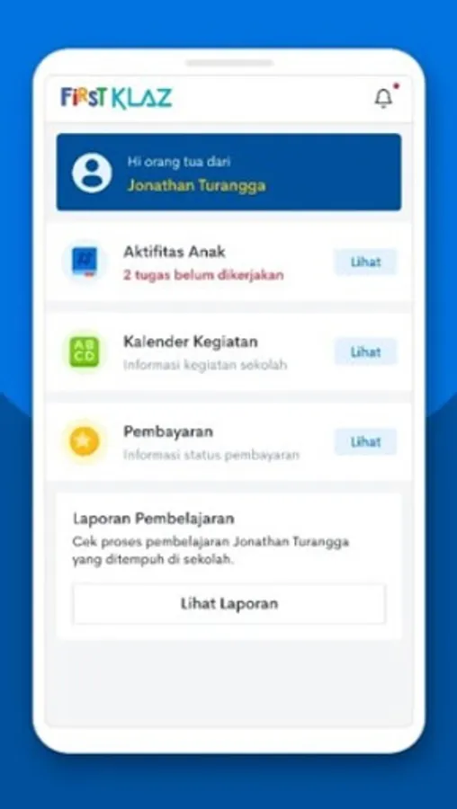 First Klaz is a platform integrated with school management system that facilitates all learning activities both Online, Offline, and Blended Learning and is equipped with various types of materials and Artificial Intelligence.
