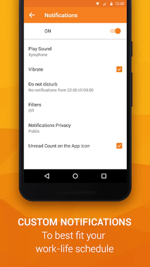 – Timely custom push notifications for each individual email account, e.g. 'Work' email address set to ‘Do not Disturb’ mode from 21:00 to 7:00