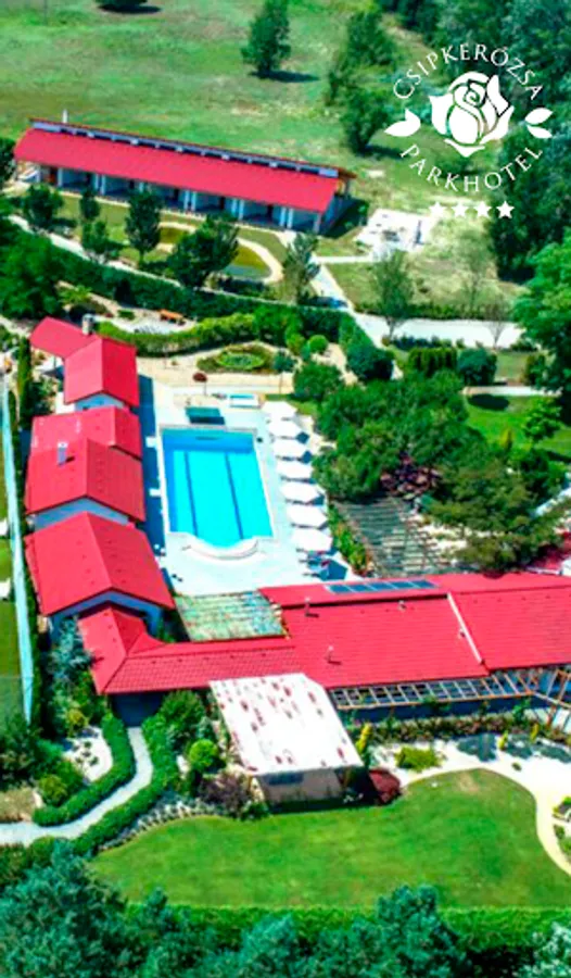 The four-star Csipkerózsa Parkhotel shines with a five-star view and has 18 rooms, including several suites, as well as various Restaurants and seminar rooms, indoor golf, flight simulator, tennis court and a swimming pool.