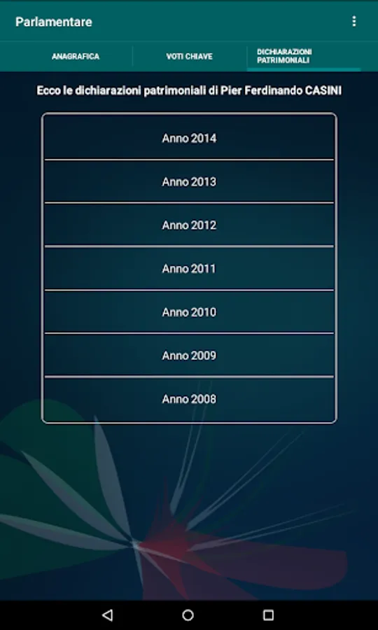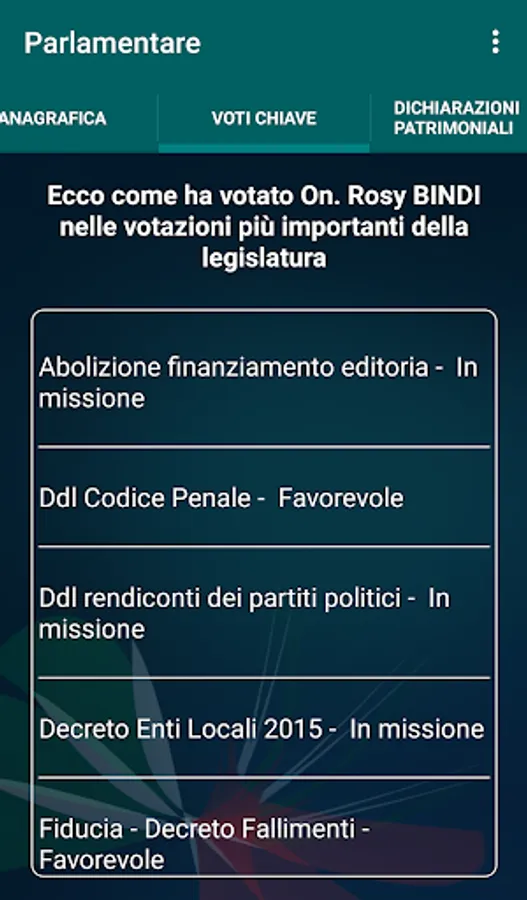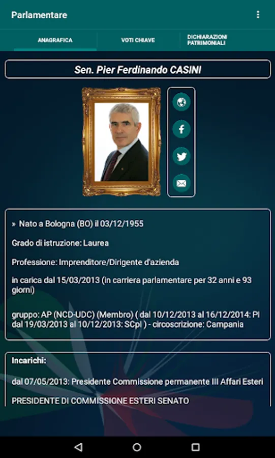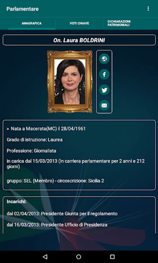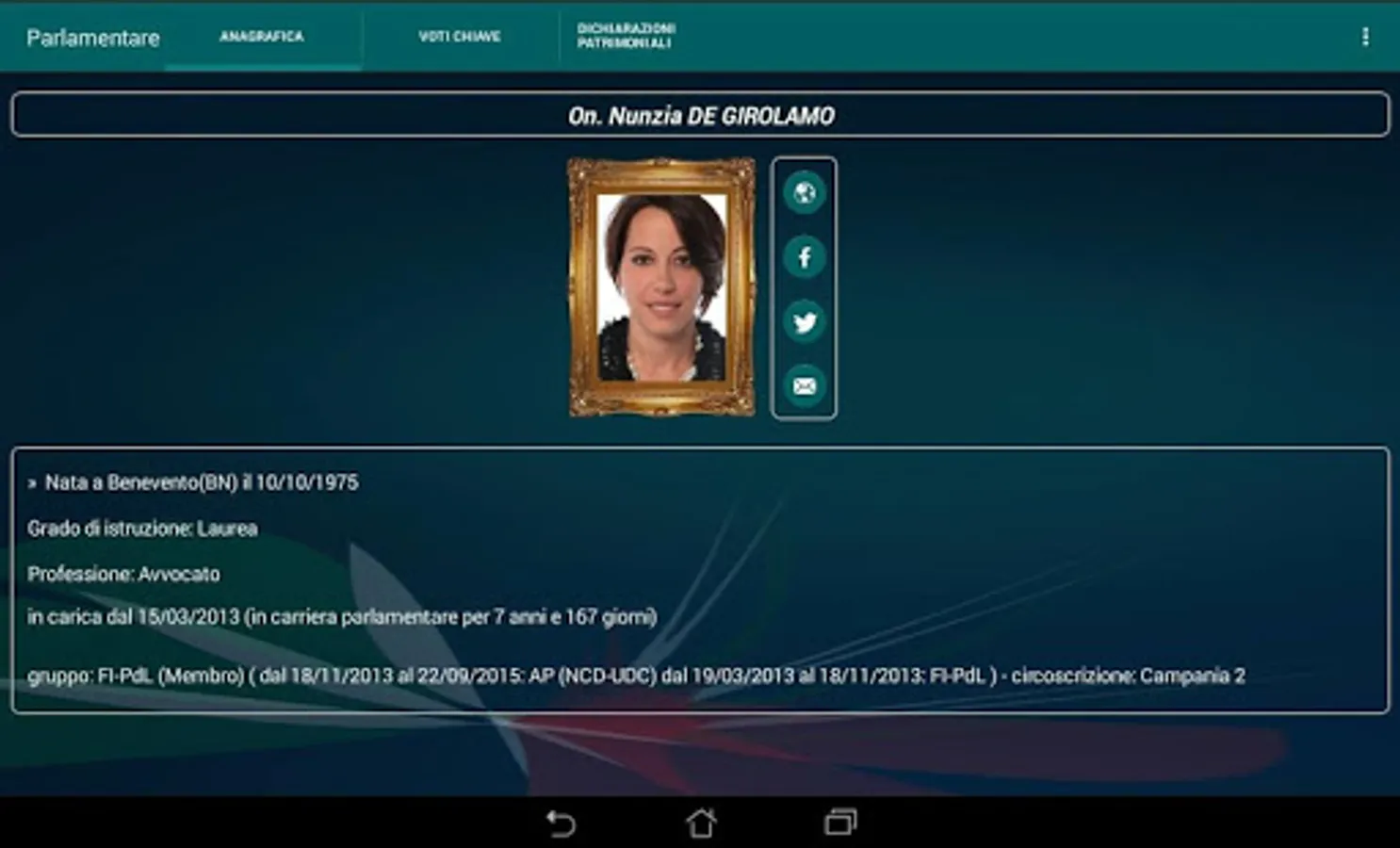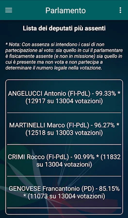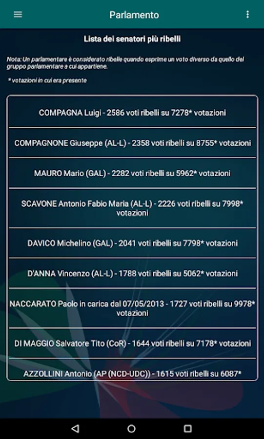 The application allows you to view the latest changes that took place in the parliamentary groups and the list of deputies and senators who sit for longer in the Italian Parliament.