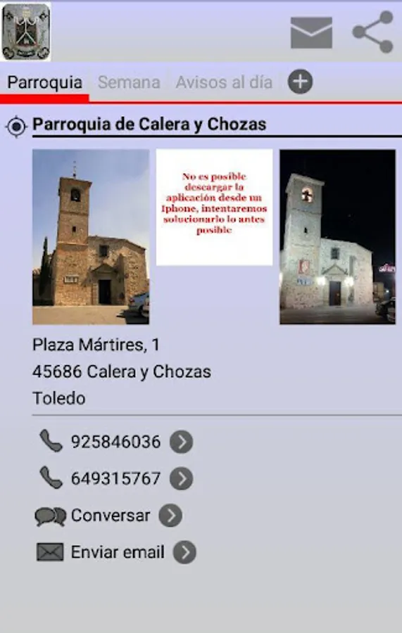Official application of the Parish of San Pedro Apóstol in Calera y Chozas (Toledo) - Spain. To be informed of everything that happens in your Parish (Masses, funerals, funerals, parties, parish sheets, etc.) and also information of the Church in general