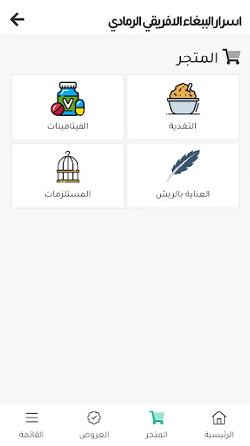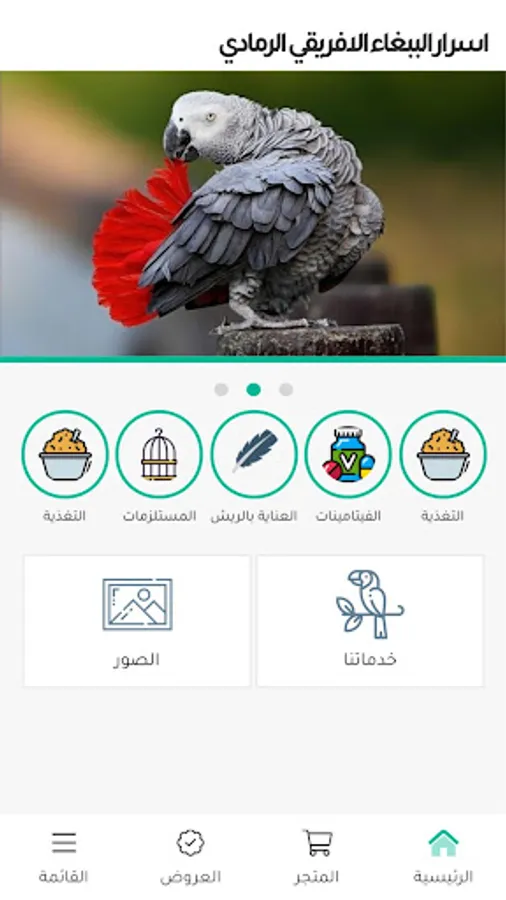 - المتجر الخاص ببيع مستلزمات الطيور ومن خلاله يمكنك الحصول على المنتجات الضرورية للببغاء الافريقي الرمادي