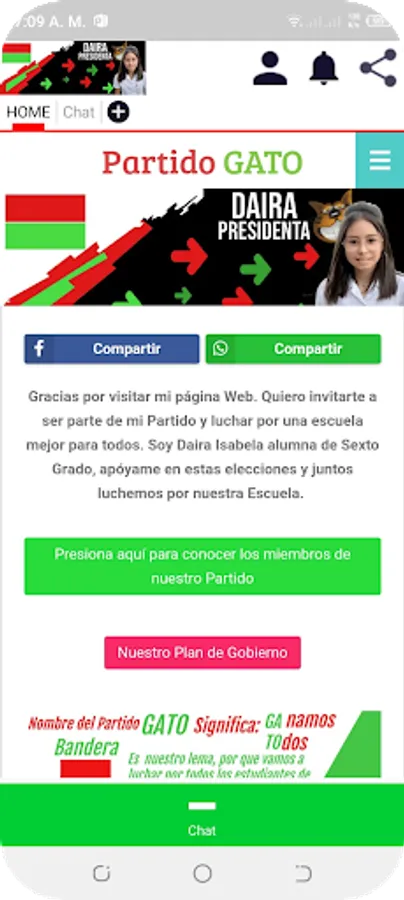 I am Daira Isabela Quesada Camacho, candidate for President of my Federico Gutiérrez Brown School of Agua Buena Coto Brus.