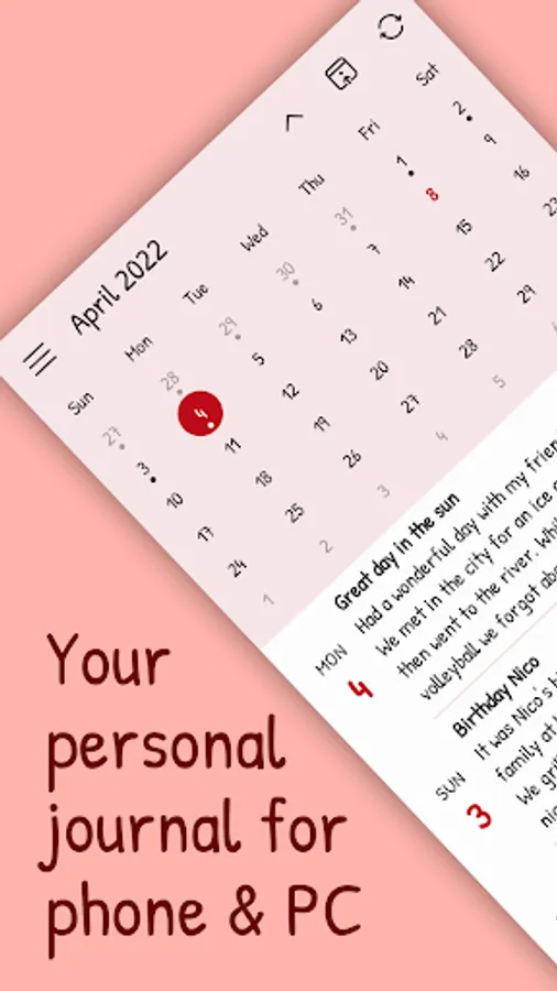 The most functional & feature-rich journal for all devices lets you keep all your precious memories in one place and even reminds you to write down your experiences every day. Diarium automatically shows information about your day making it easier than ever for you to diary.