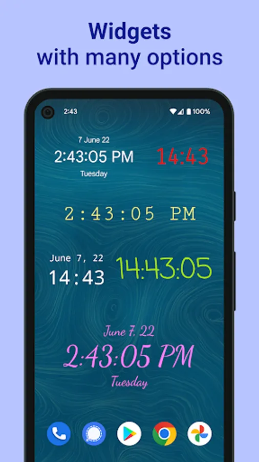• switch between local time and UTC, 24-hour and 12-hour clock