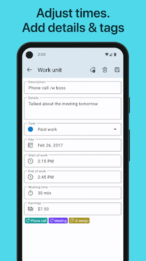• Cross-platform time card / work log app, works for all your devices (Android, Windows, iOS, macOS) incl. Cloud sync