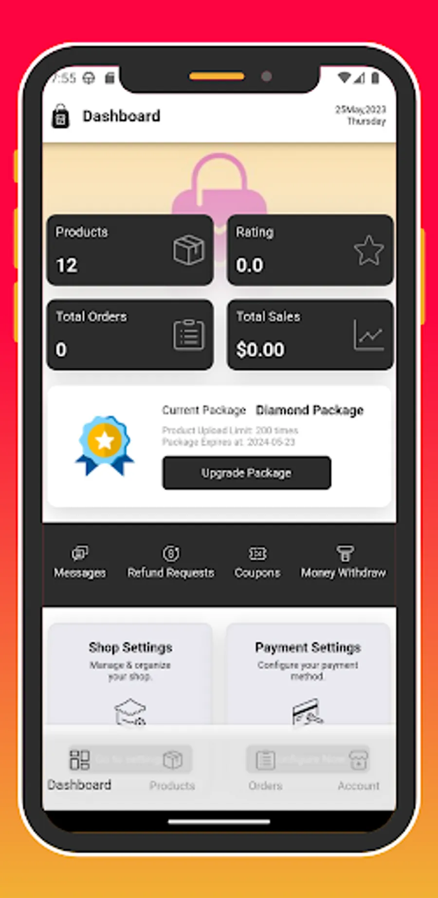 Istanbul market seller application Follow up on customer orders and sales in addition to store settings and settings