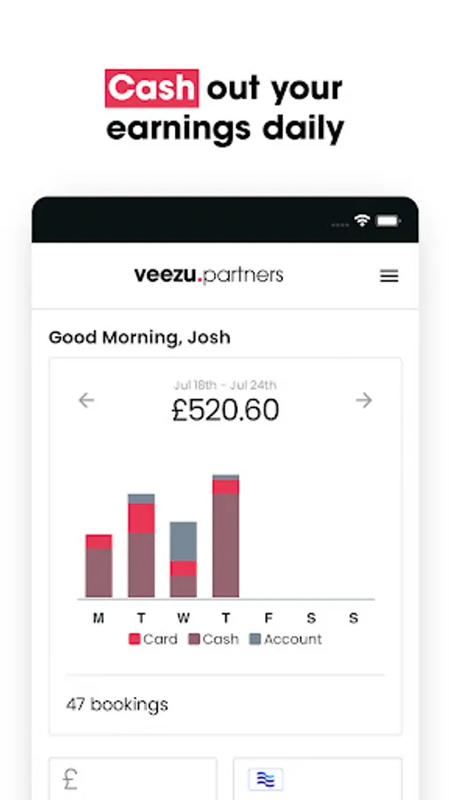 The Veezu Partners driver partner portal enables you to view your daily earnings for card, cash and account on the go, you can pay your weekly access fees and see your daily payouts all in the portal. You can view how many bookings have been completed, upload your documents and raise support ticket queries into our Veezu Services team on your device. There is a news, offers and faq section to keep up with the latest information and offers for products such as Veezu.Insure and manu other subscriptions. The Veezu Partners app is free to download and uses your existing desktop login details.