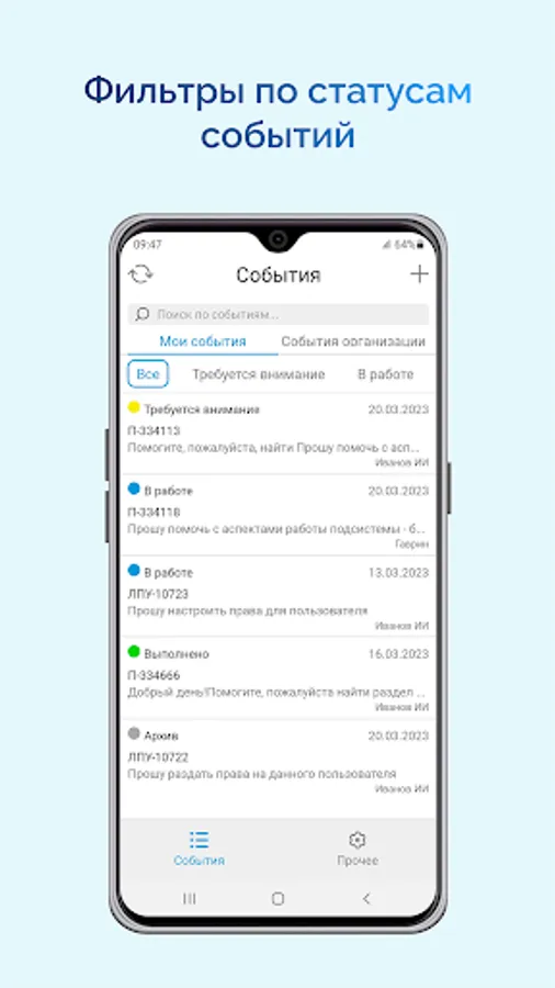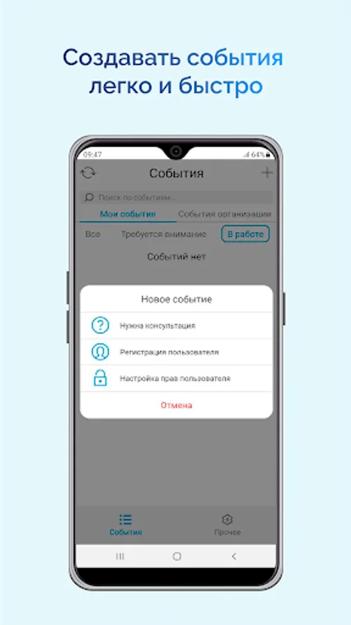 - Ease of communication with technical support (simple forms, minimum number of actions, organizing an event is easy and fast).