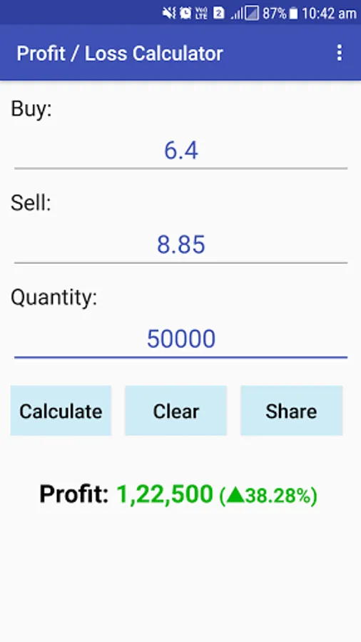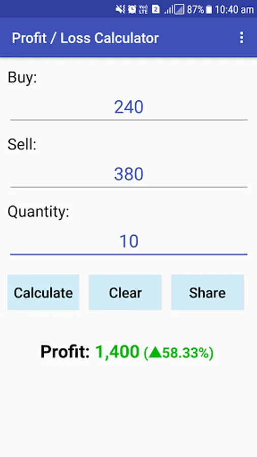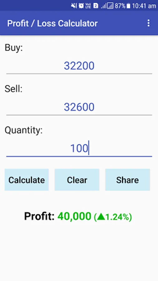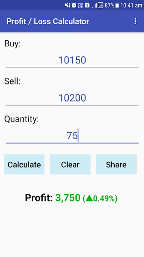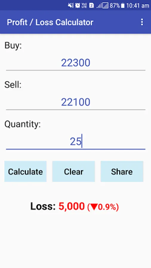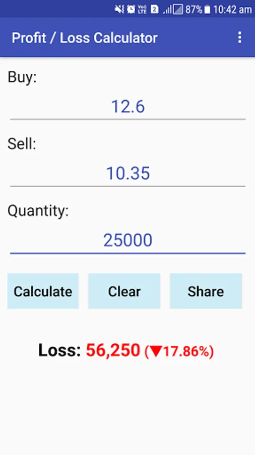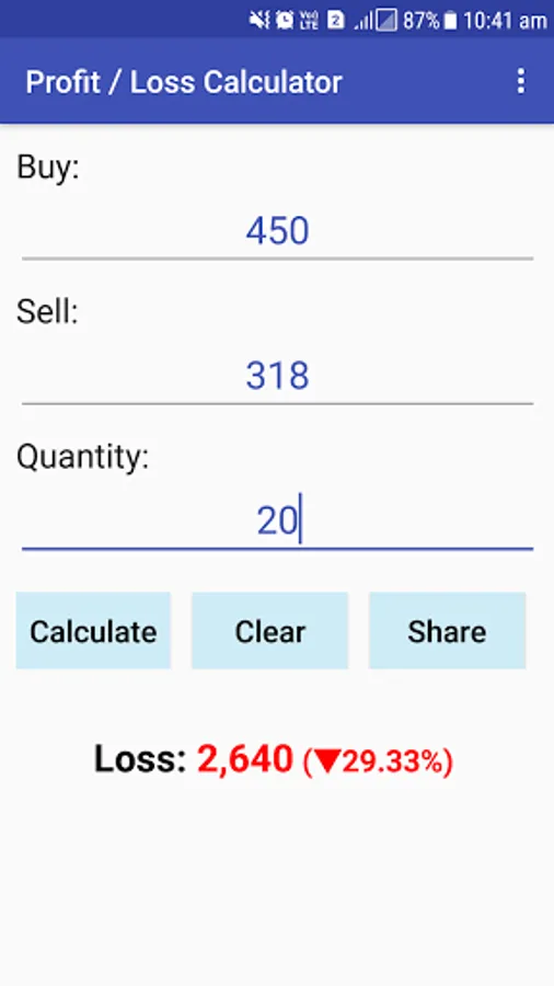 Calculate Profit / Loss By Entering Cost Price, Selling Price and Quantity.