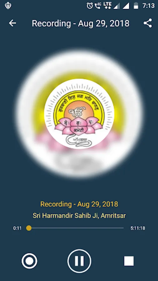 Auto Record Timer - Selected Gurbani Channel will be automatically play/record at scheduled time.