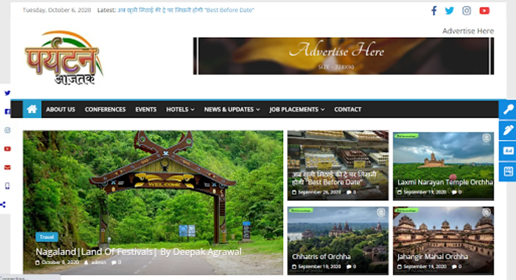 Paryatan aaj tak is a news portal designed to provide information about tourism and hospitality industry including latest news updates, jobs in tourism and hospitality sectors, blogs of the tourism writers, history of the heritage around the globe and also act as a bridge between tourist and tourist service providers.