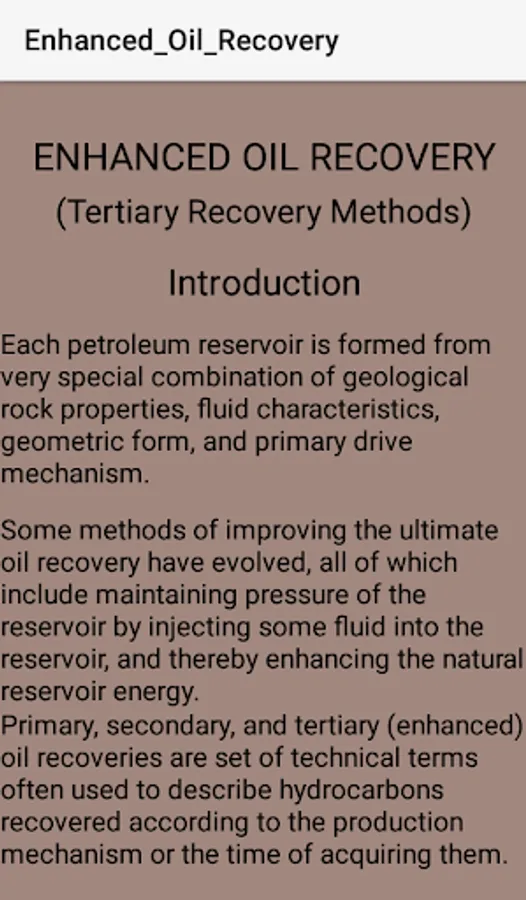 Enhanced Oil Recovery3 gives great insights into the implementation or application of enhanced oil recovery methods.
