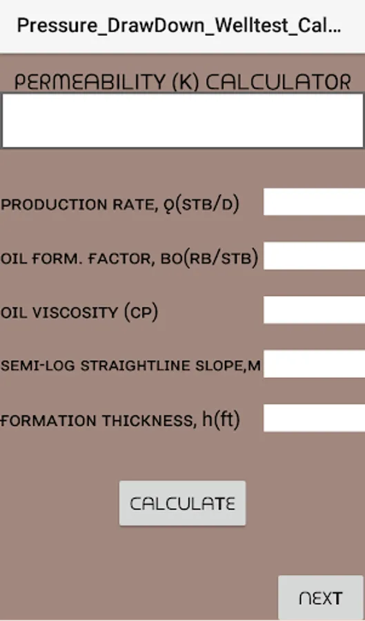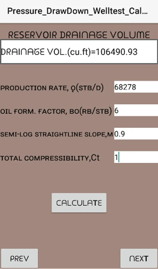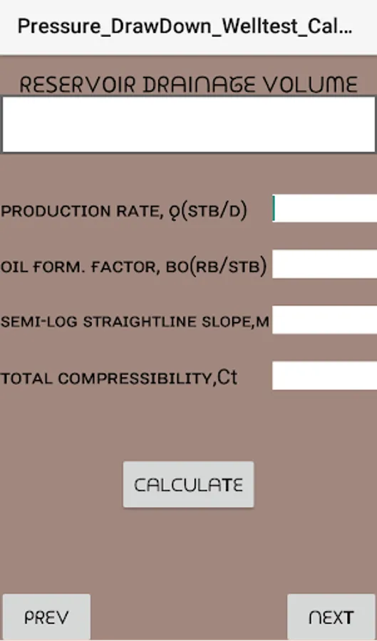 Pressure DrawDown WellTest Calculator is developed primarily to offer assistance to petroleum engineers, reservoir engineers, researchers, petroleum production engineers, drilling engineers, completion engineers, petrophysicists, petroleum geologists, students (undergraduates, postgraduates, etc.), and other oil and gas professionals compute the desired parameters: reservoir permeability k, skin factor s, and the drainage volume (reservoir size).