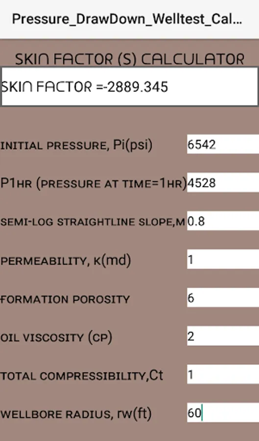 Pressure DrawDown WellTest Calculator computes reservoir permeability, skin factor, and reservoir drainage volume parameters, for a drawdown well test (straightline method).