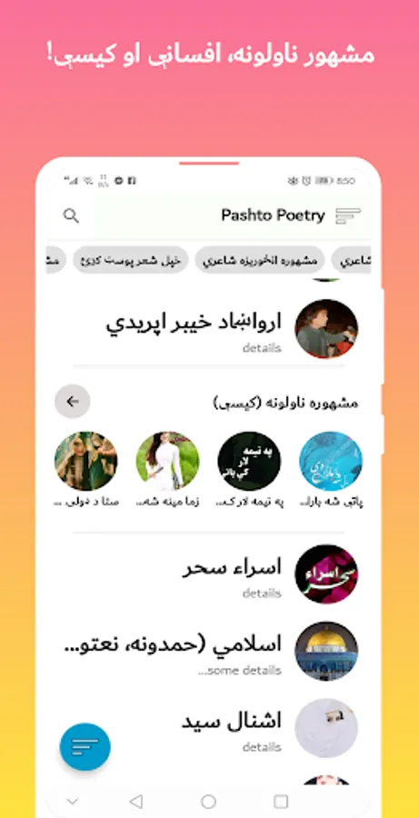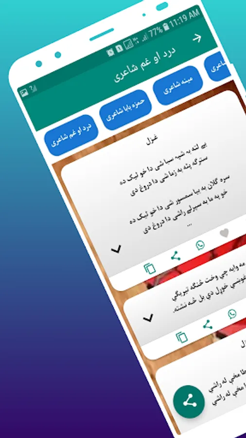 Pashto shayari app consists of all types of poetry and ghazals. This app is categorized so you can choose your favorite poetry by categorieis.