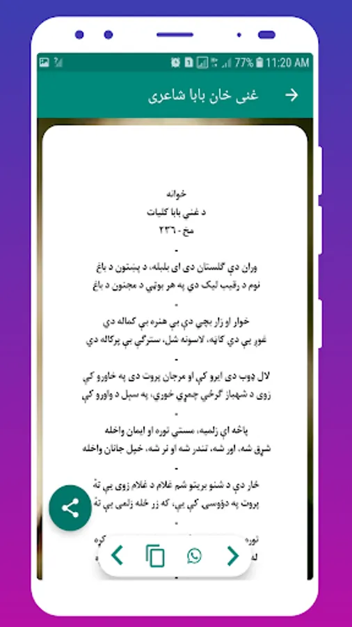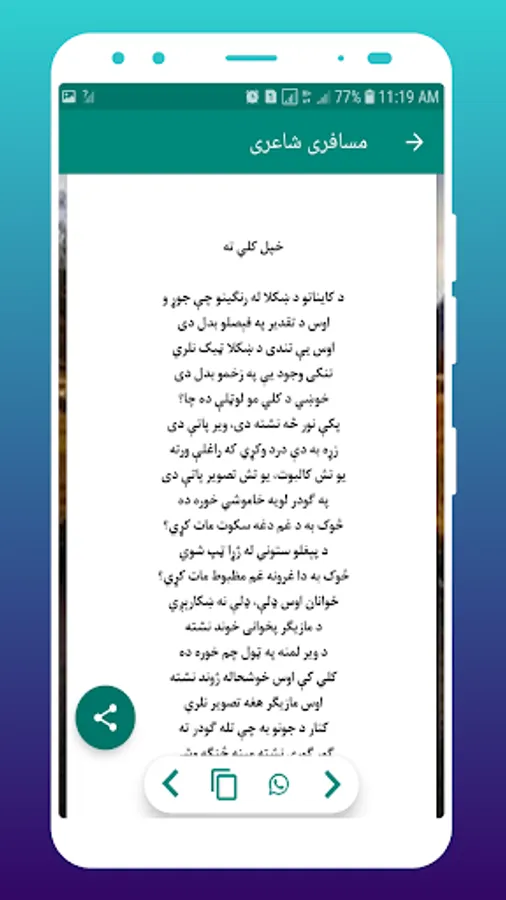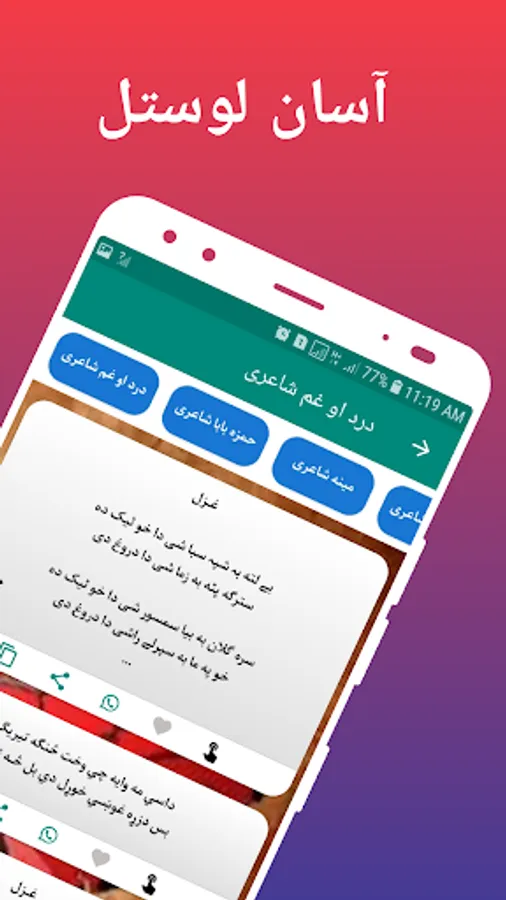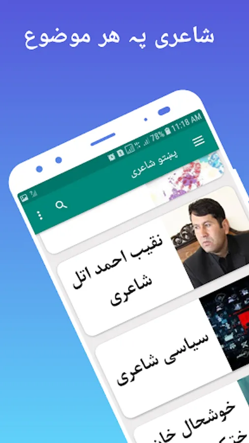 Pashto shayeri app has a lot more for you. If you are a pashto poetry lover, download this app and enjoy reading beautiful poetry.