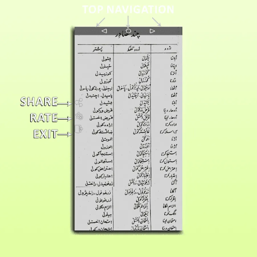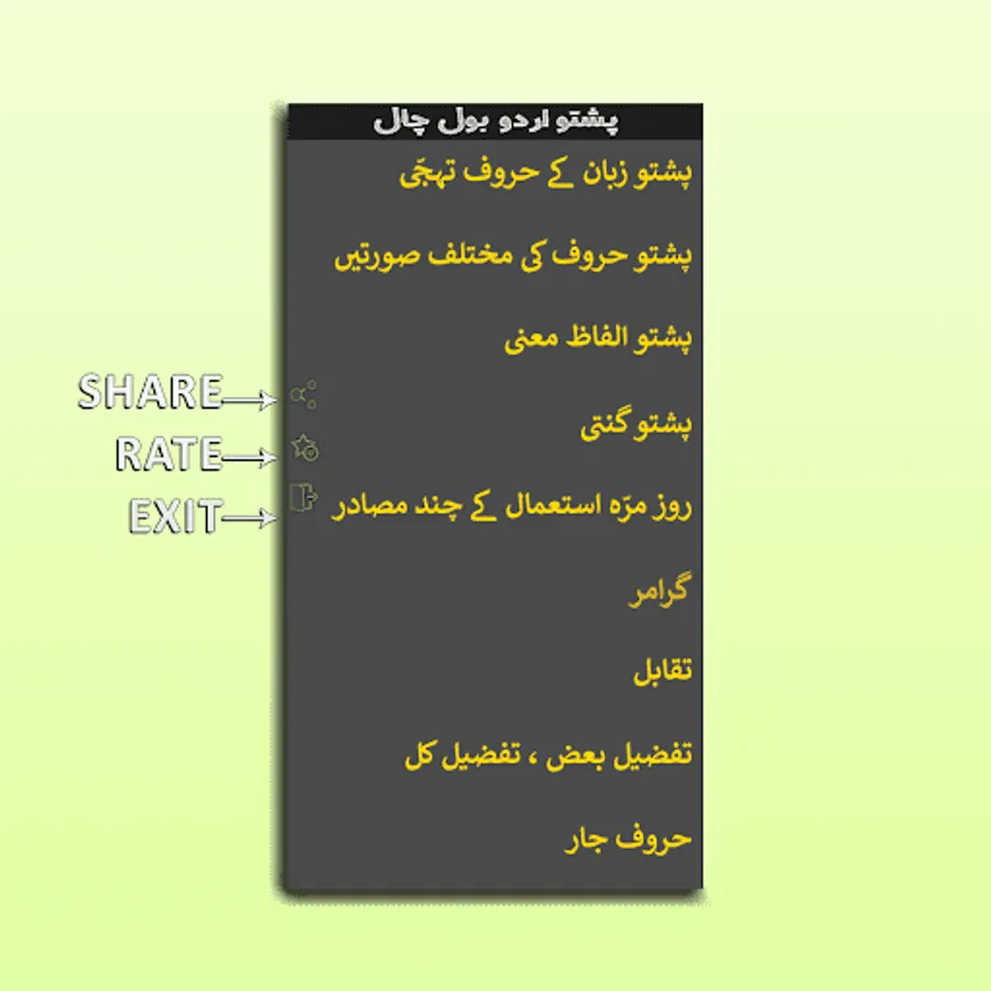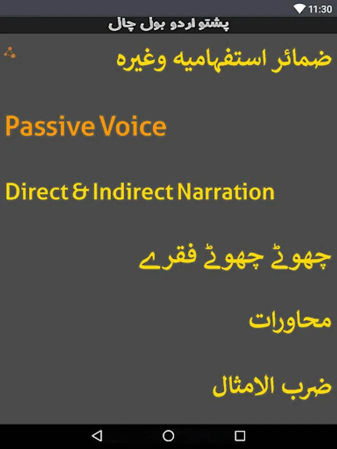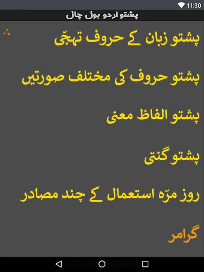 • Pashto lessons in Urdu: All Pashto grammar rules and vocabulary are explained in simple Urdu. This makes it easy for Urdu speakers to understand the Pashto language concepts.