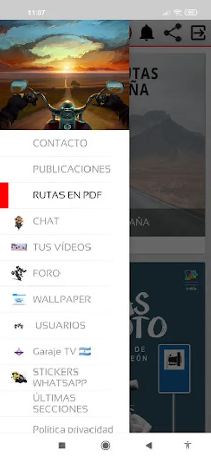 A place to meet people like you, with the same passions. Here you can chat, share short videos of the routes, add stickers to your WhatsApp, you can write in the forum divided into provinces.