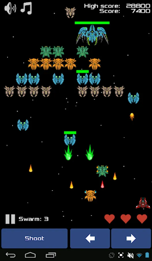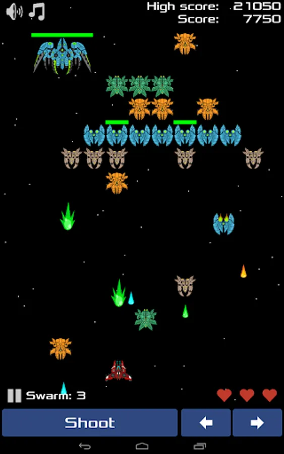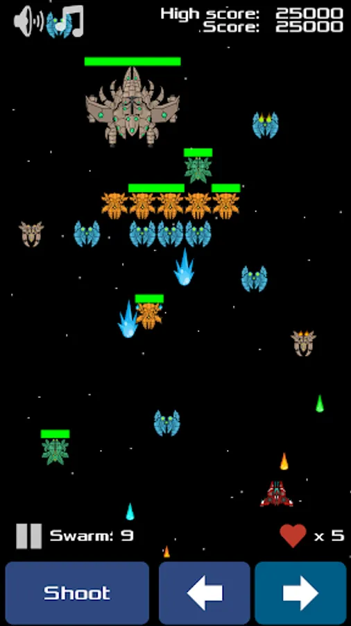 Blast swarms of aliens as they try to attack you. Fight tough bosses along the way. But be aware that the aliens are getting smarter as you venture deeper into the space.