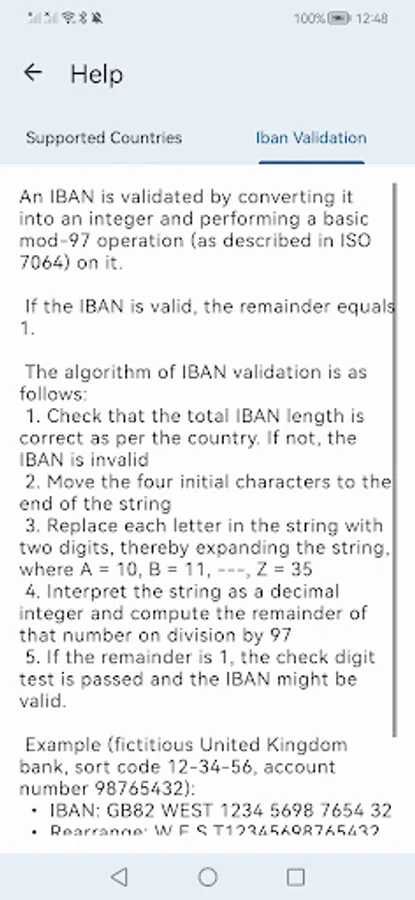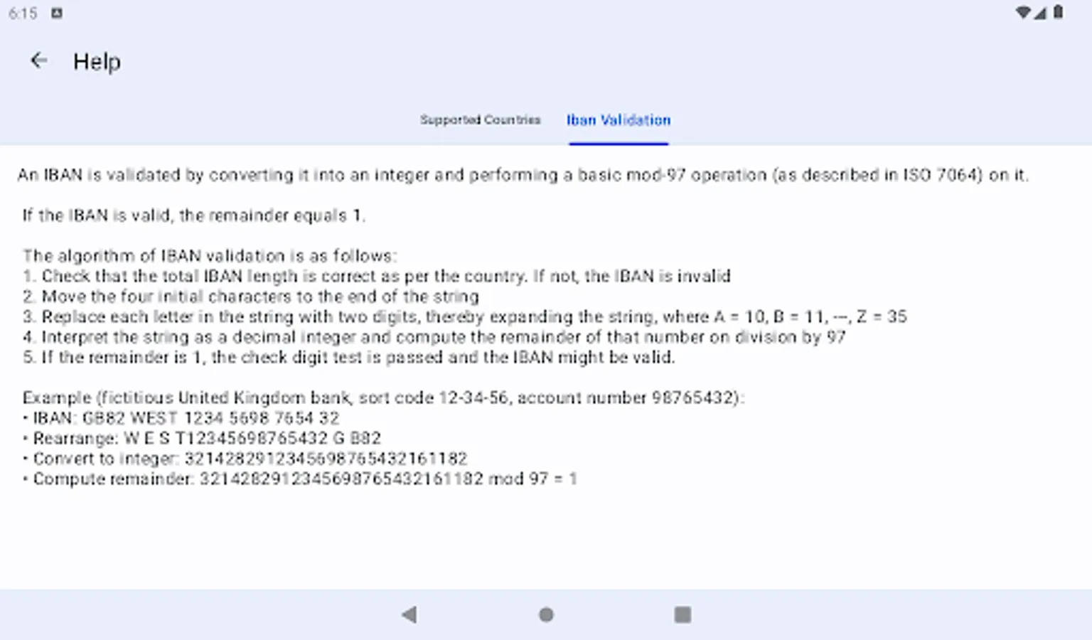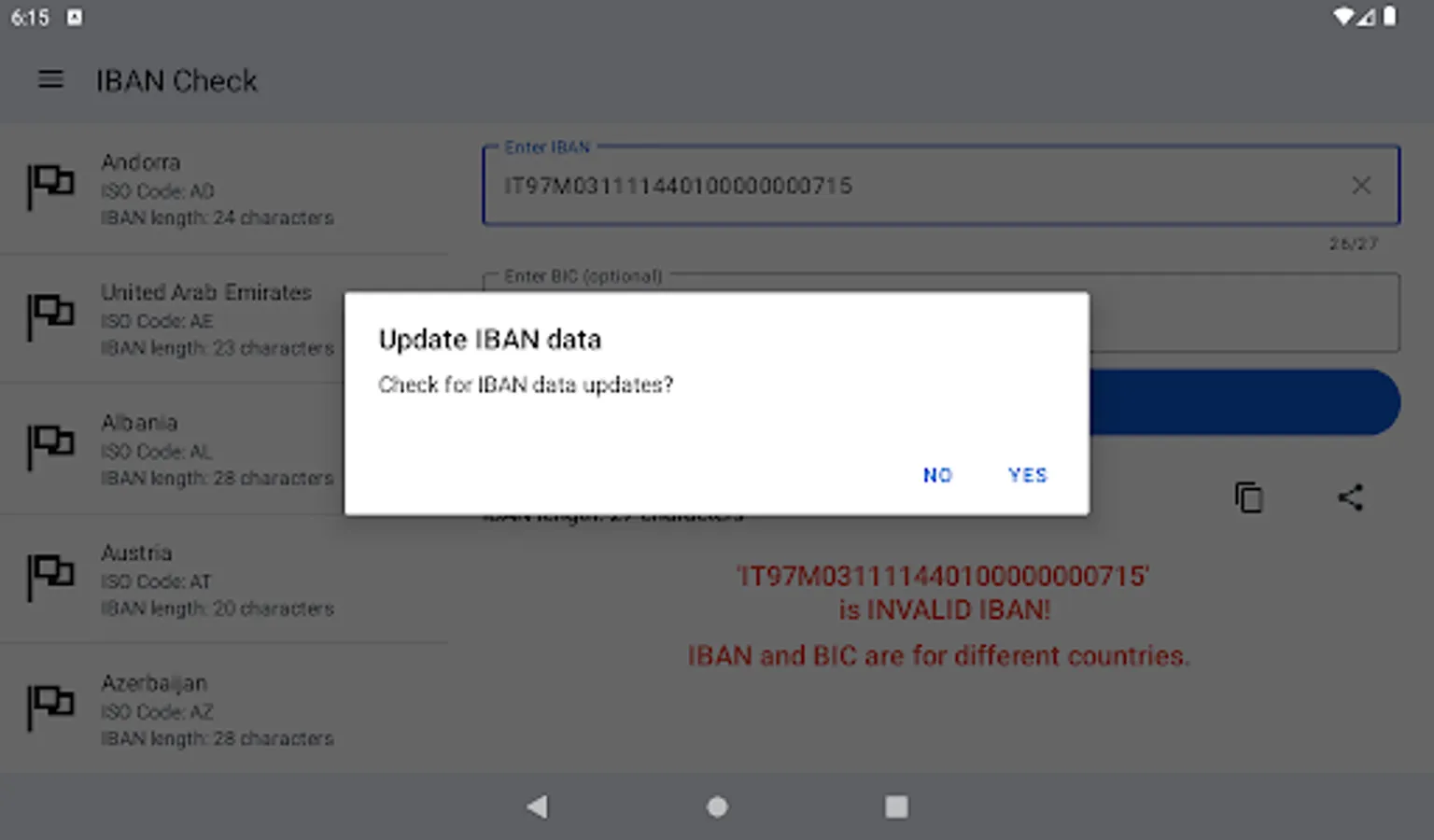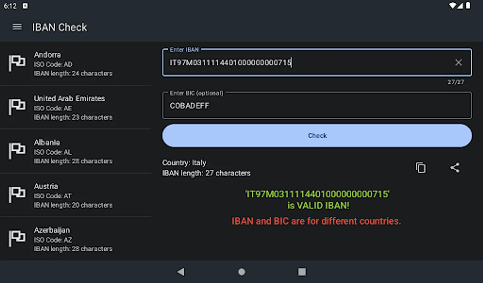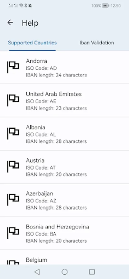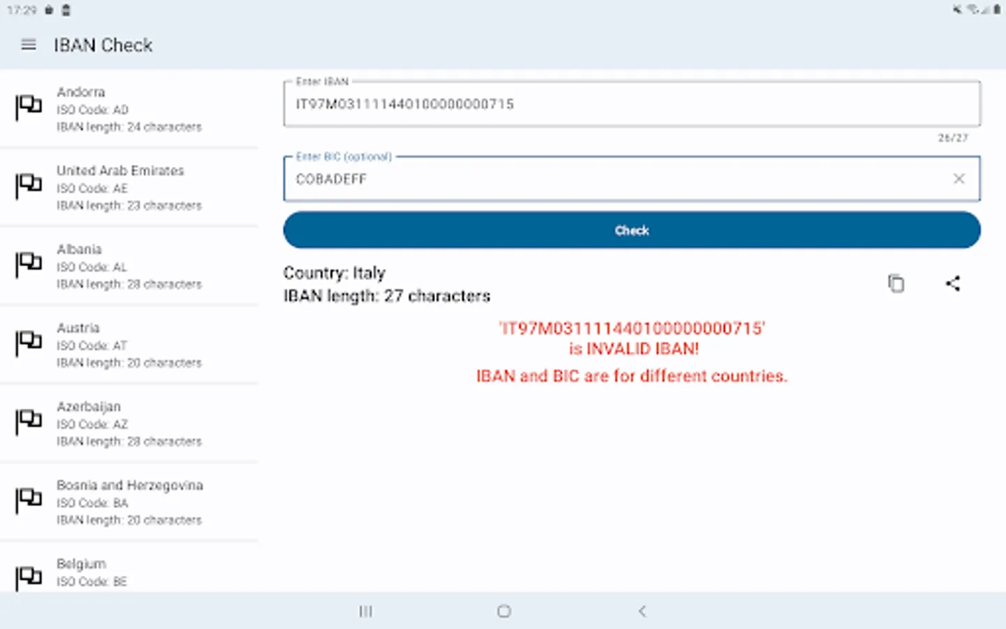 IBAN Check has a list of countries that have introduced IBAN. It helps the app in the validation process. This list is updated regularly.