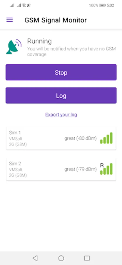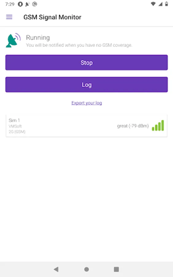 Thank you for choosing GSM Signal Monitor & SIM Card Info, we hope you like it! Let us know what you think in the review section or drop us a quick e-mail at support@vmsoft-bg.com