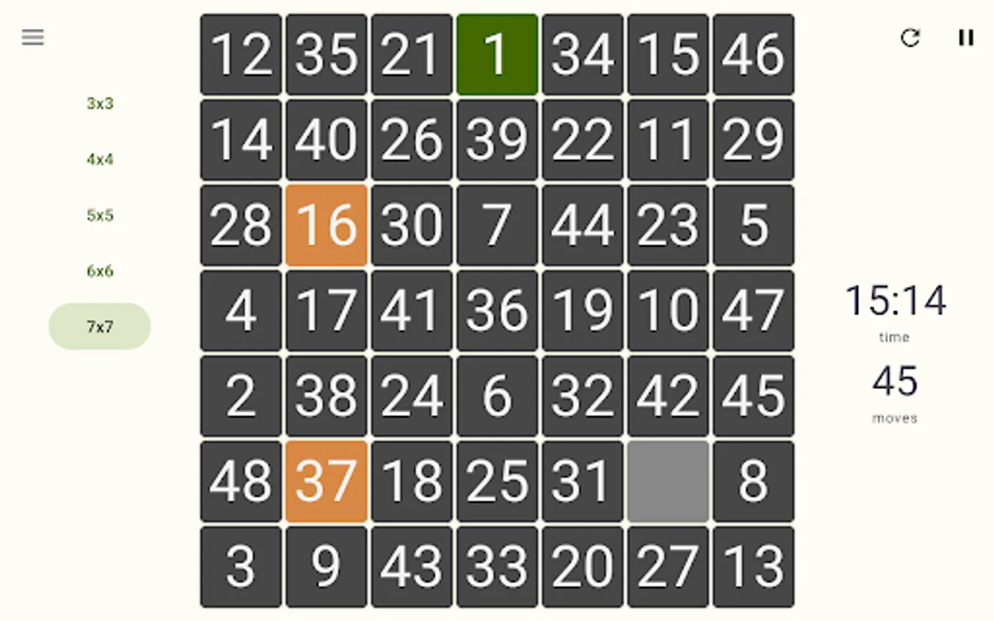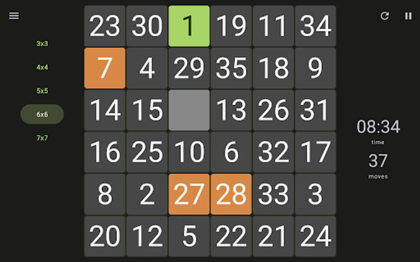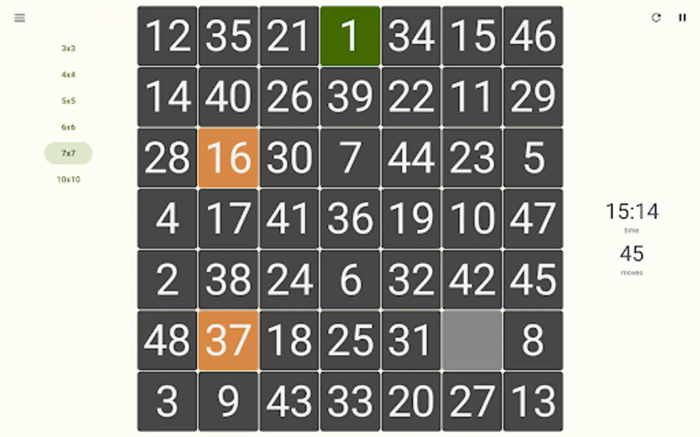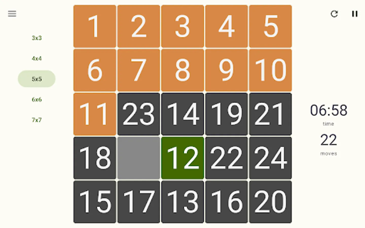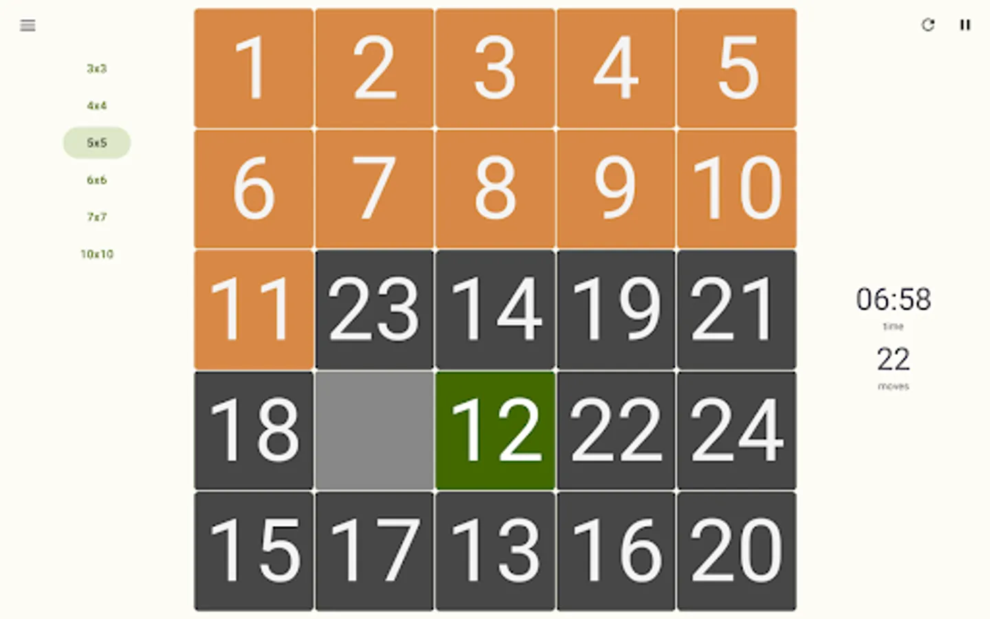 - Play randomized game mode - try to arrange completely randomly shuffled numbers, where there is no guarantee of a successful solution;