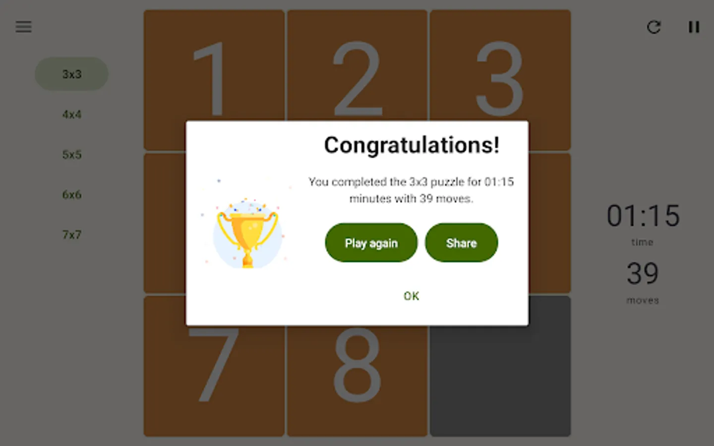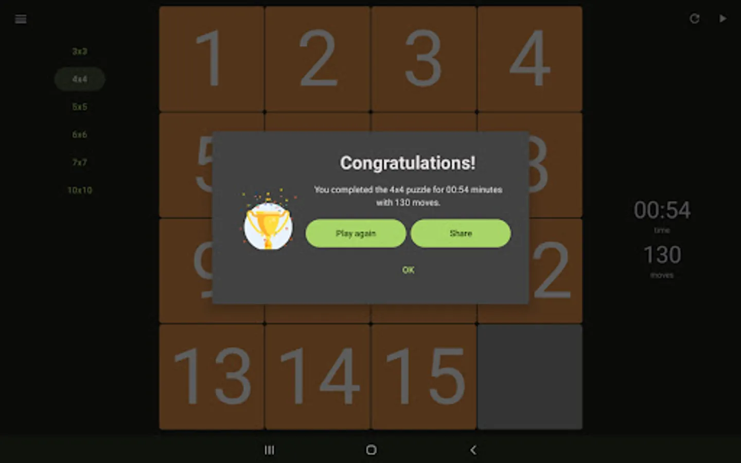 You want to play classic 15 numbers puzzle game or challenge your brain with different game board sizes?