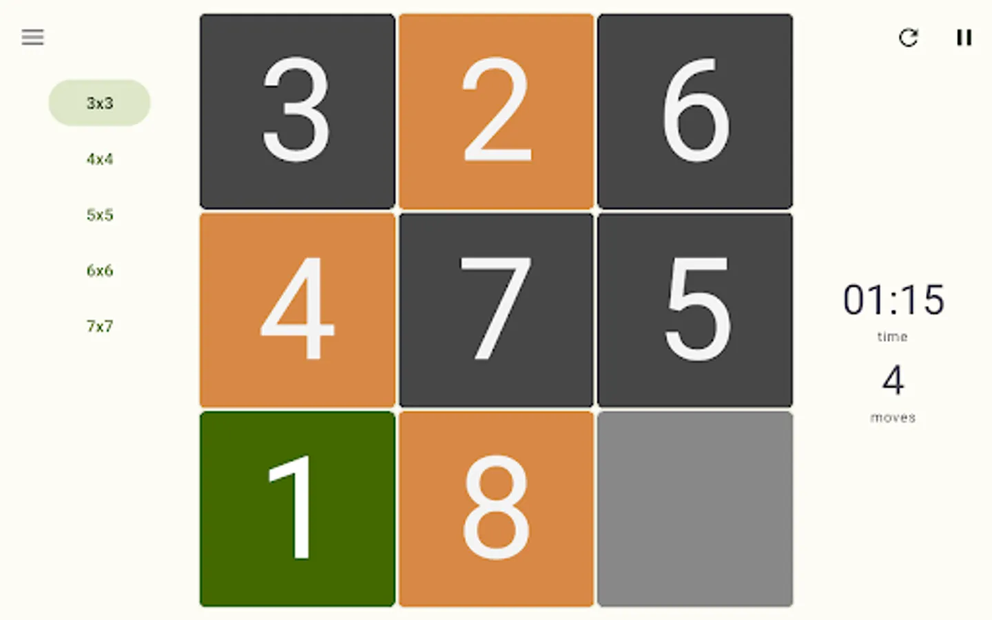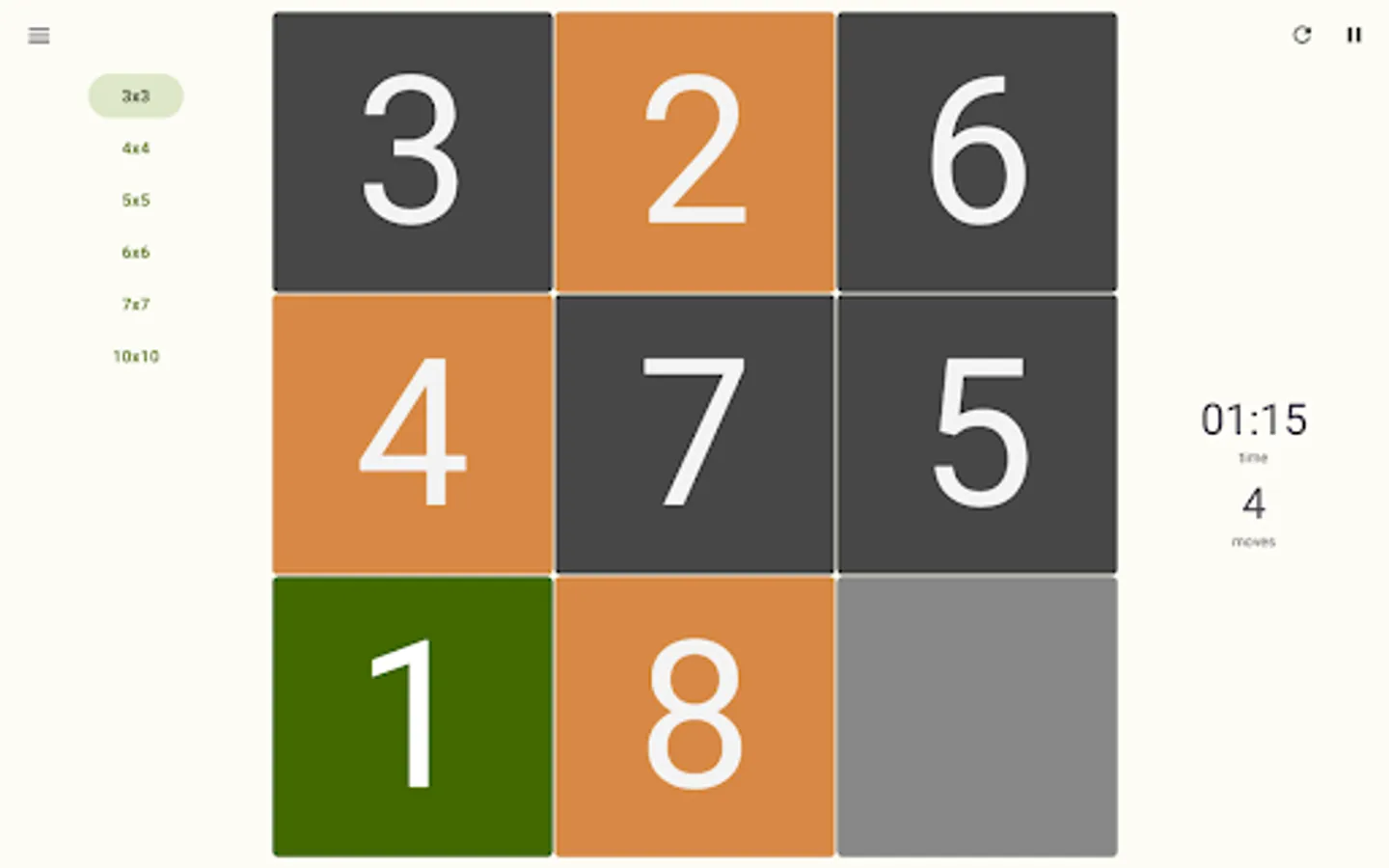 - Tap or Slide tiles to arrange numbers in ascending order;