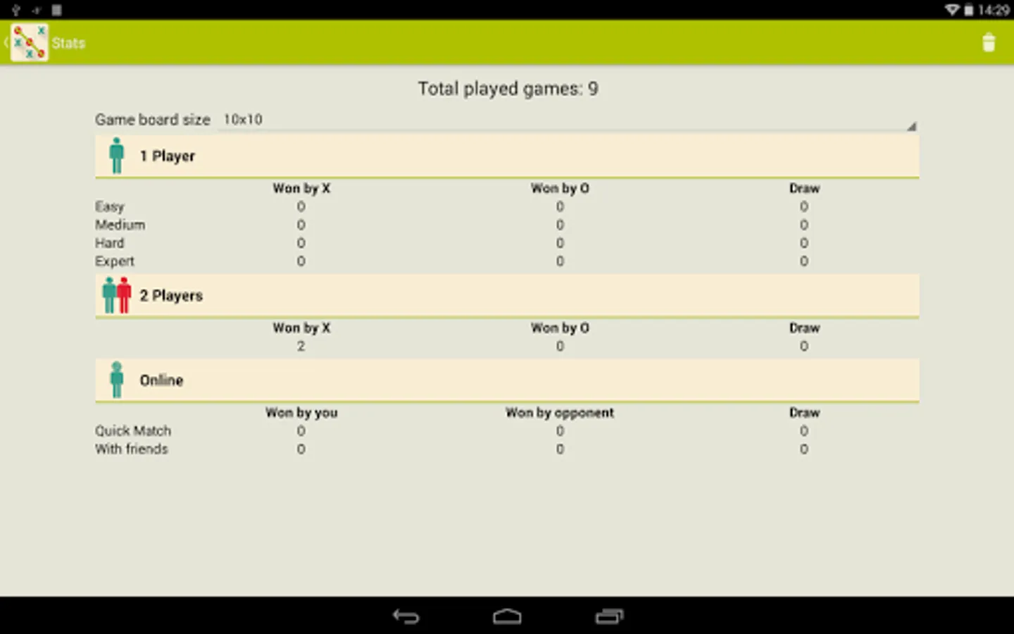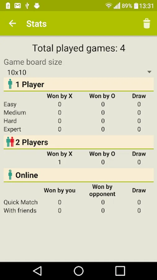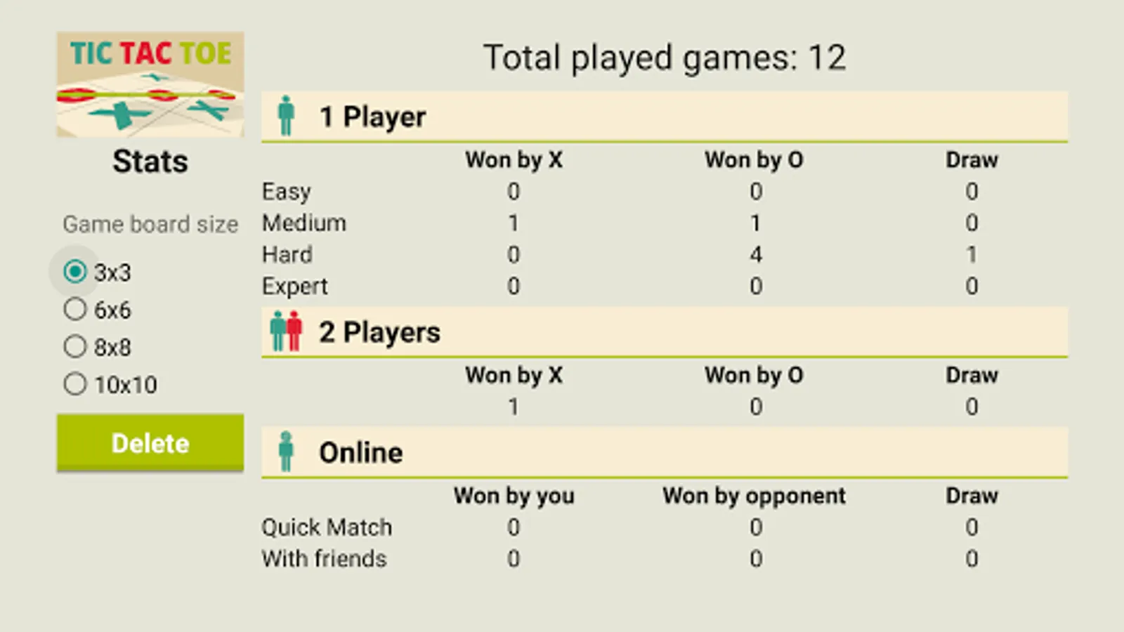 * Ability to switch between different board sizes (3x3, 6x6, 8x8, 10x10)