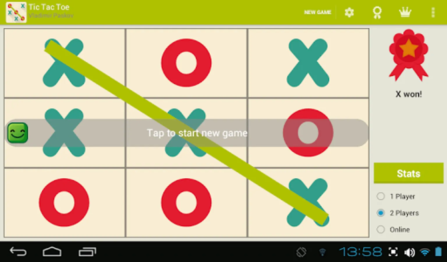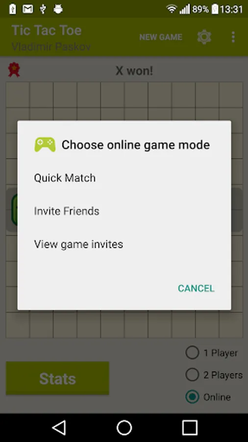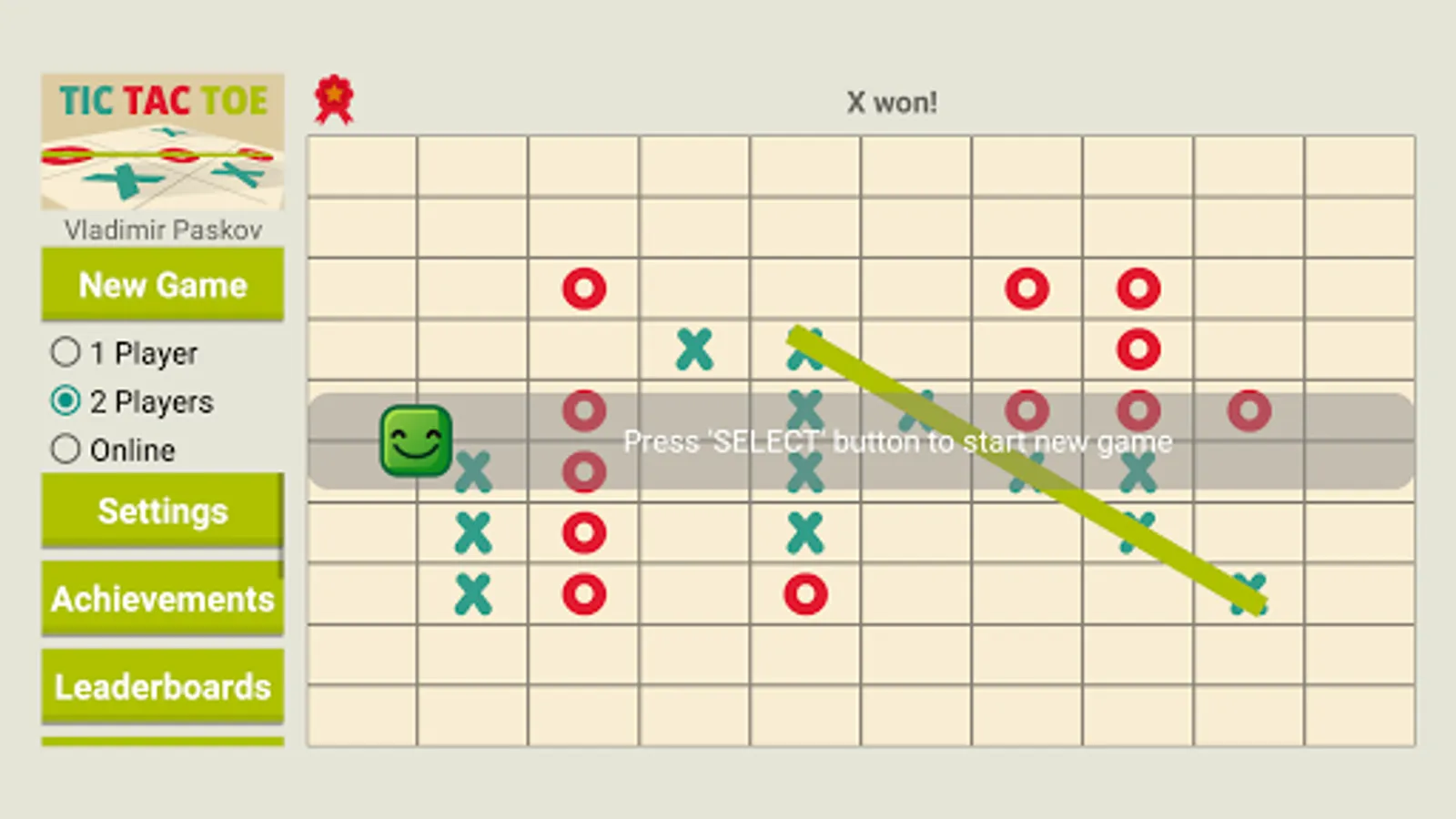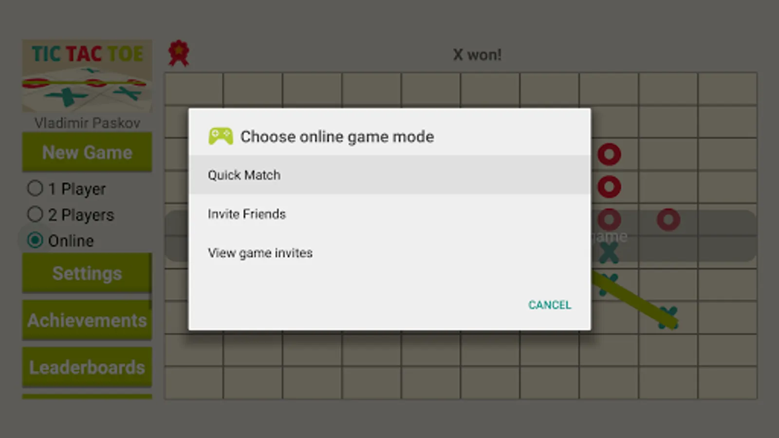 Game of Tic Tac Toe with single (against AI), multiplayer and online game modes.