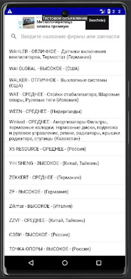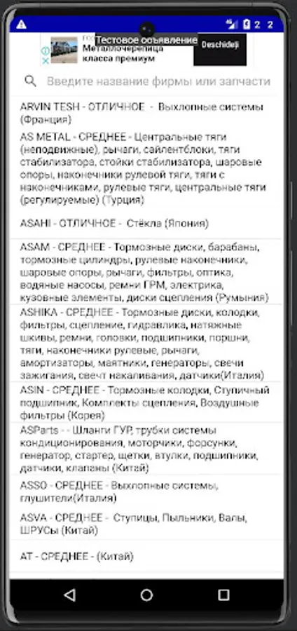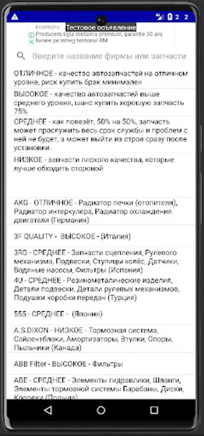 When it comes time to buy spare parts for your car, and the choice among companies is huge, you won’t immediately remember which company offered to you in the store can be taken and it will be of good quality, and which is better to bypass. This application is a simple cheat sheet that contains most of the auto parts manufacturers with an indication of the quality of these auto parts according to reviews on most forums or sites. If you notice an inaccuracy or disagree with the data given in this application, write to the mail: pasonicipasonici@gmail.com