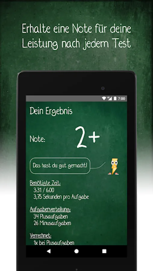After a lesson the big surprise comes: What rating did you get? Have you been good enough for a 1 or even a 1+? Besides the grade are further useful information, such as a list of the projected tasks, the average computation time per task or the distribution of tasks.