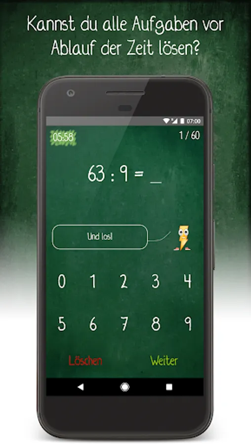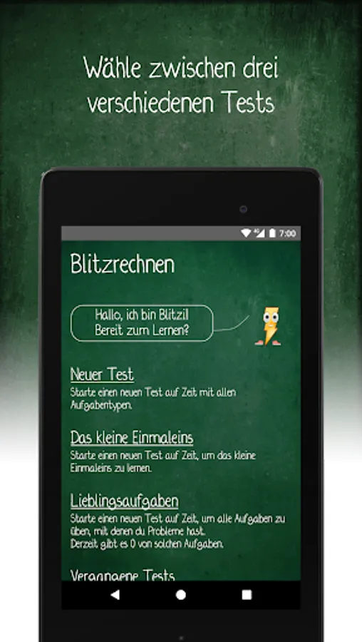 Whether at home for homework or on the road toward vacation: Blitzi, the mascot helps practicing lightning computing tasks.