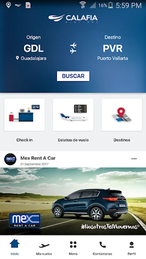 Searches for flights and destinations, book your next trip, paid from the app, check schedule and status of your flight, please check-in easily and get your boarding pass on your phone.
