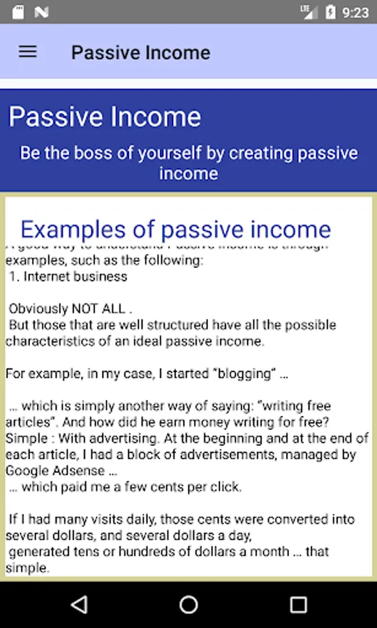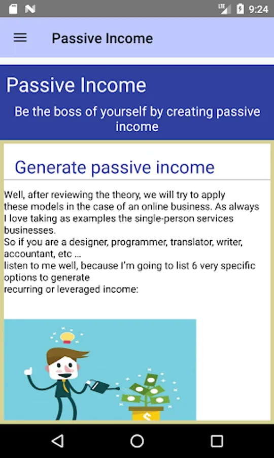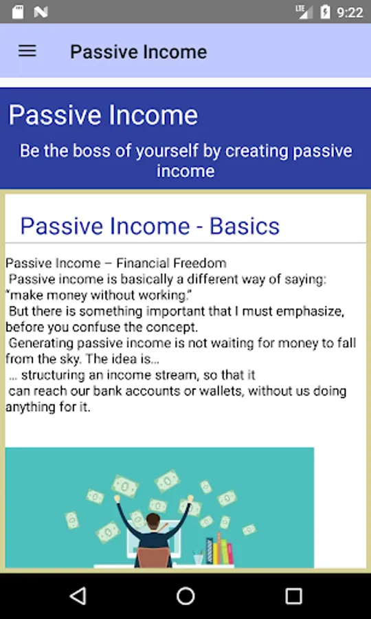 In this app you will learn: what is passive income, why it is so important, wonderful examples of life, benefits of passive income, how to generate passive income, smart passive income ideas to progress immediately, smart passive income for travelers and the best passive income for beginners. Economic independence now - join us now in this great adventure - has changed your life forever.