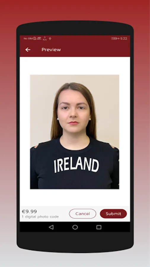 Simply have a friend take your photo and upload it straight onto the app. Assuming all the usual requirements are met and the €5.99 fee has been paid, your passport photo code will be with you within 24 hours.