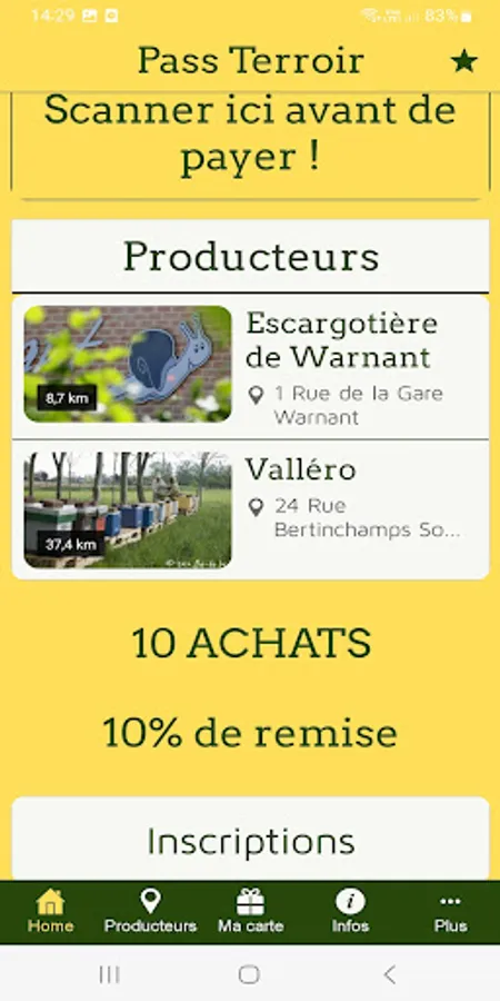 Say goodbye to bulky and misplaced loyalty cards. “Pass Terroir” offers the one and only digital loyalty card valid at producers. Collect points with every purchase and enjoy exclusive discounts and special offers directly from the app.