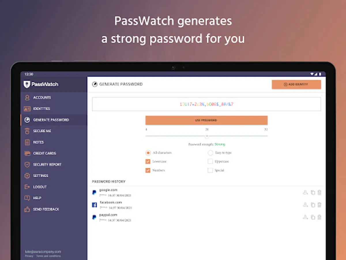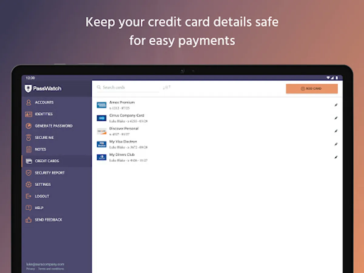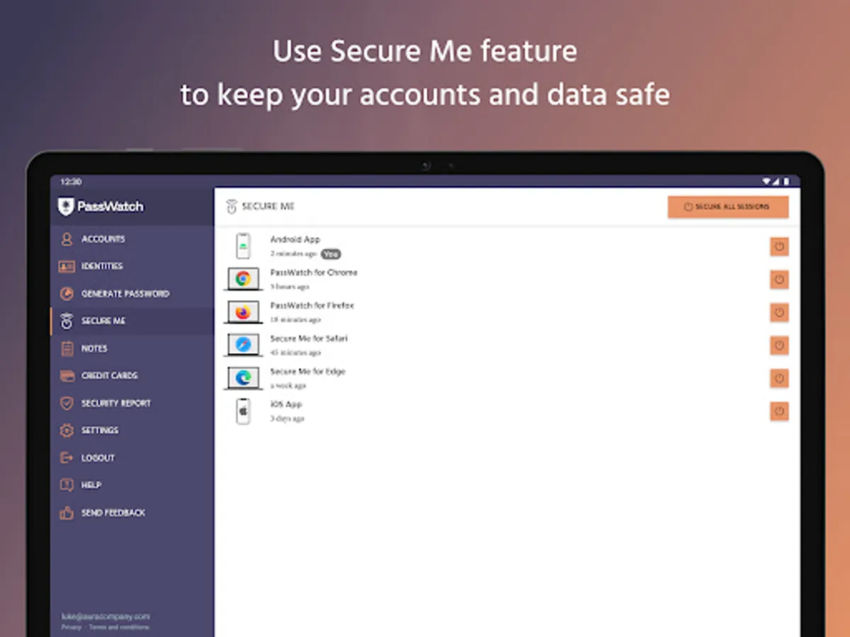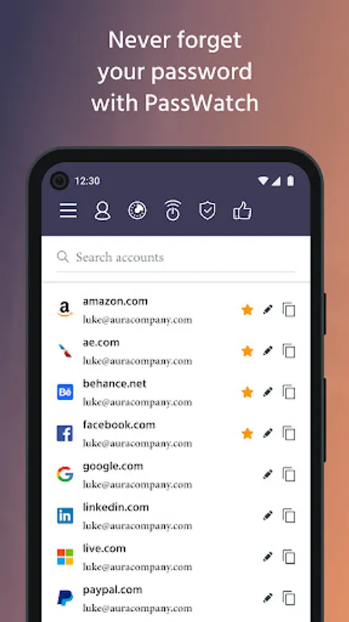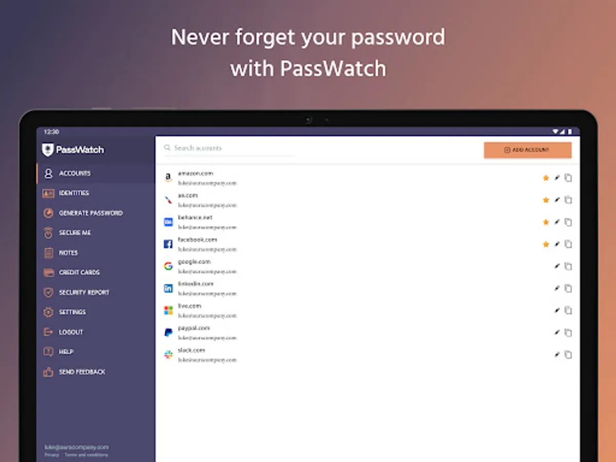 PassWatch allows you to easily access and share your online accounts safely, wherever you go.