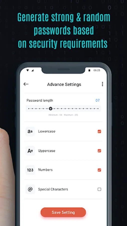 Strong Password Generator is the best app for generating secure and random string passwords. You just have to choose which characters your password should contain and click the button.