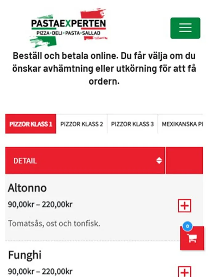 You can order online with different payment options. Take advantage of the rich menu content and attractive promotions. You can order online pizza, burgers and salad in the Norrtälje region.