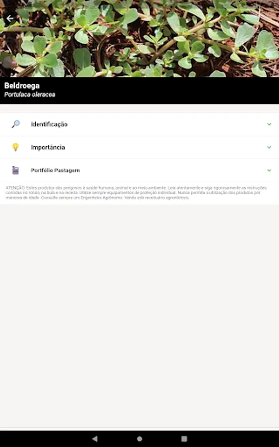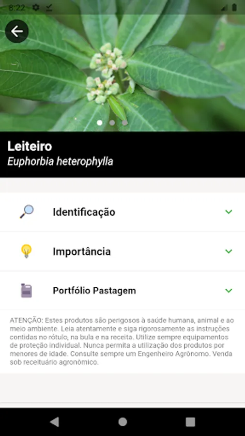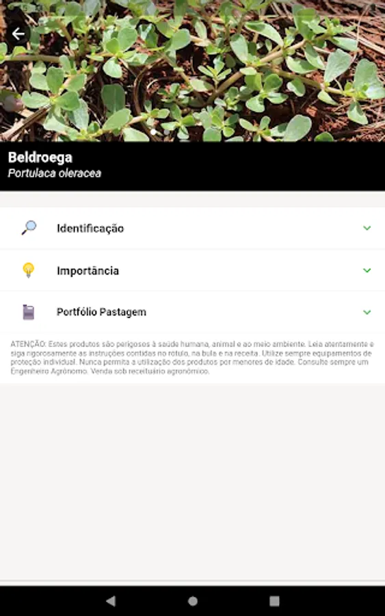 The tool has the following information such as: Photo Bank; identification and regional importance of the main weeds in the Brazilian pasture.