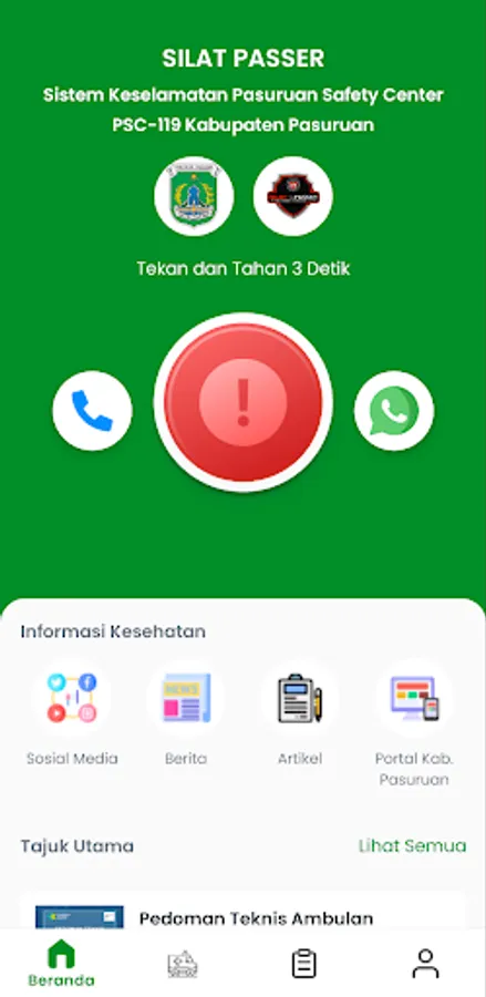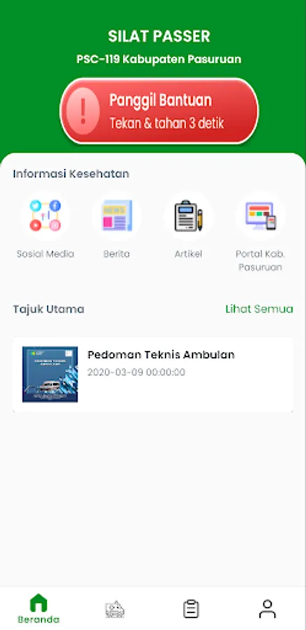 This application has the main feature of the "Panic Button", where the user will get a quick response to an emergency that requires immediate medical attention. Devoted to all people in Pasuruan Regency.