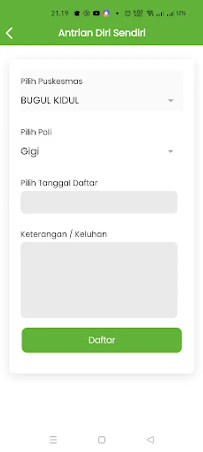 - Lakukan registrasi dan dapat langsung melakukan pendaftaran antrian pada puskesmas yang telah dipilih.