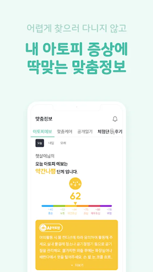 We provide customized health management information for patients with atopic diseases by using the medical big data provided by the National Health Insurance Corporation and the user's diary.
