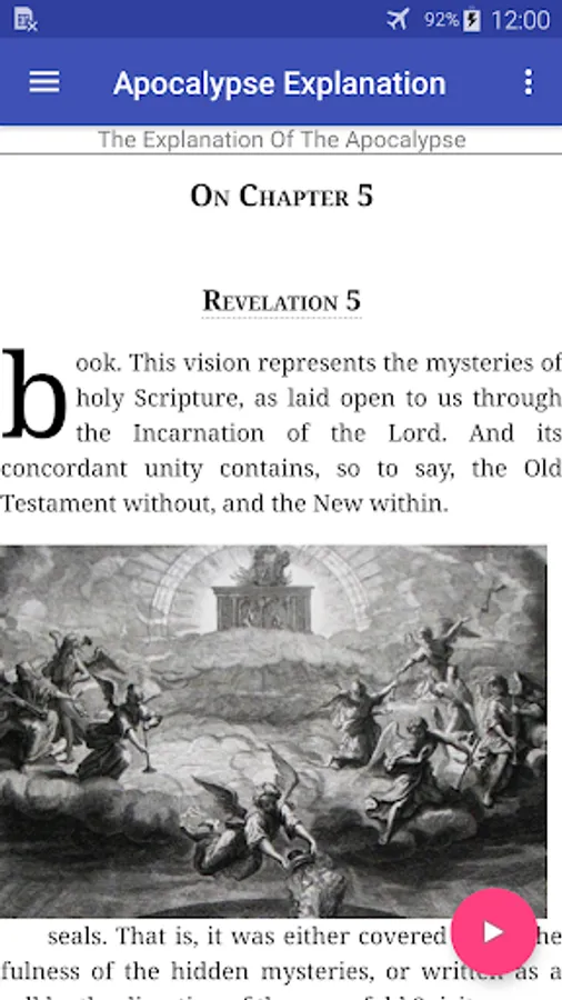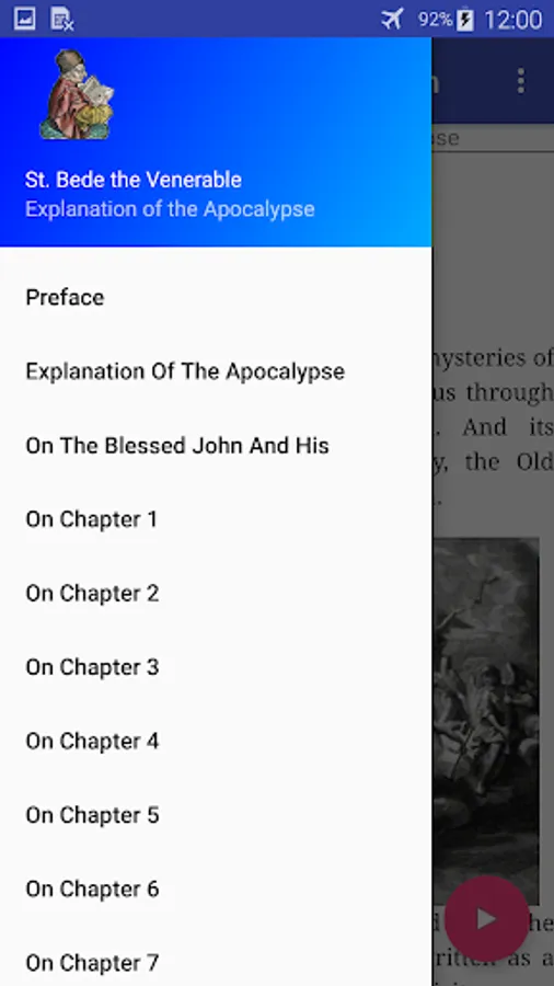 The Explanation of the Apocalypse by Ven. Bede (672 - 735) is one of the earliest surviving commentaries on the Revelation of St. John. Bede considers the visions not to be necessarily in order, but contemporaneous, with occasional recapitulations. He says the visions representing the condition of the Church in all ages, under different aspects. For example the thousand years, in the twentieth chapter, are interpreted of the present period of the Church's existence, in accordance with the opinion of St. Augustine. Previous to Bede is an exposition by Tichonius, which gives a similar interpretation. Bede also appears to have adopted several opinions from St. Gregory the Great, and Primasius, as well as St. Augustine. The date of the "Explanation" is circ. A.D. 710-716.