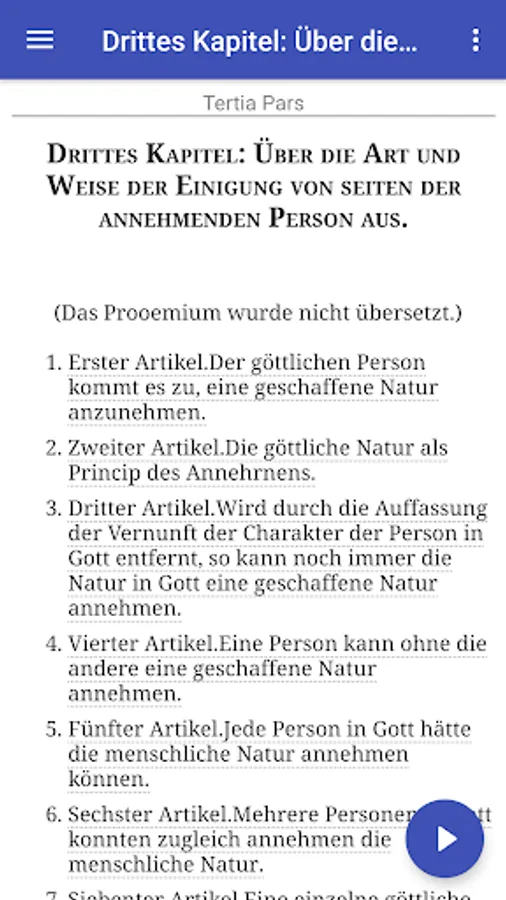 The three parts are in quaestions, these are divided into articles. The articles are introduced by objections; they are usually followed by a counterargument, and then the analysis or teaching decision is made in the core of the article, followed by an opinion on the objections. The topics covered include philosophical theological doctrine, moral and virtue doctrine, and Christology and the sacraments. As sources Thomas used the Holy Scriptures, church fathers and theologians, who were considered authorities, liturgical texts and philosophers, among them mainly Aristotle. In addition, Thomas sometimes calls difficult to determine "quidam", whose teachings circulated in the 13th century, continue councils, ecclesiastical orders and canon law sources. In the prologue, Thomas expressly says that he addresses beginners; This explains the pedagogical-systematic structure.