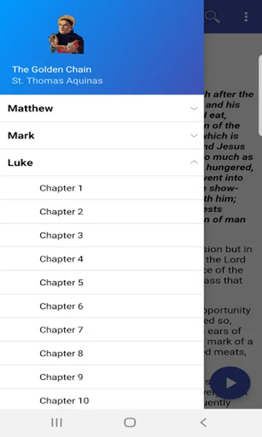 St. Thomas Aquinas' Catena Aurea or "golden chain" is an anthology of Patristic commentary on the Gospels, including quotes from over fifty Church Fathers. Catena Aurea is structured by presenting each verse to be analyzed followed by commentary from the Church Fathers.