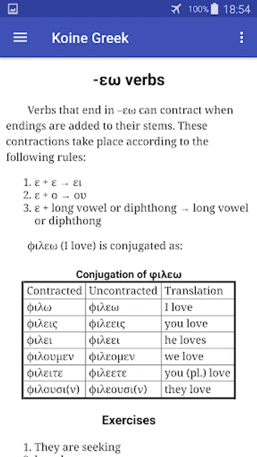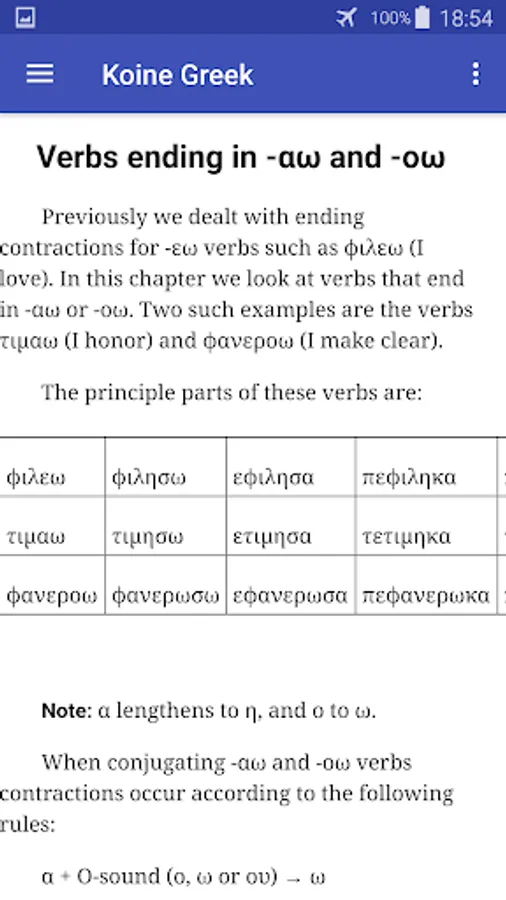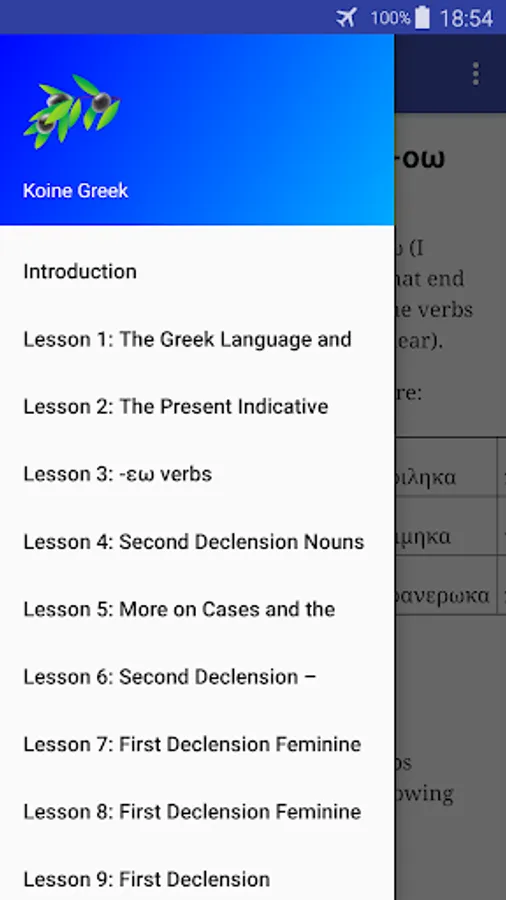 This app is setup as a primer to help you learn the Koine Greek of the New Testament. In 42 short lessons the basics of Greek grammar are covered with the aim of quickly getting you to the level of reading an interlinear Bible.